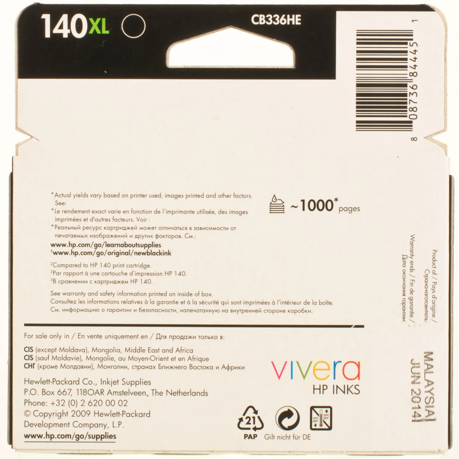 Картридж OJ CB336HE черный HP (№140XL) описание: