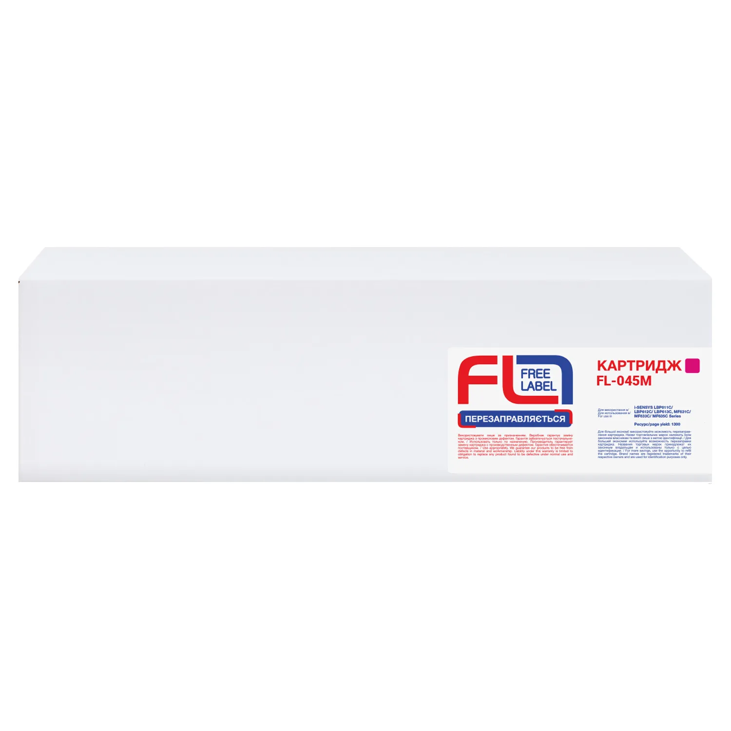 Ресурс совместимого картриджа 045M Free Label составляет 1300 страниц, что соответствует ресурсу аналогичного оригинального картриджа.