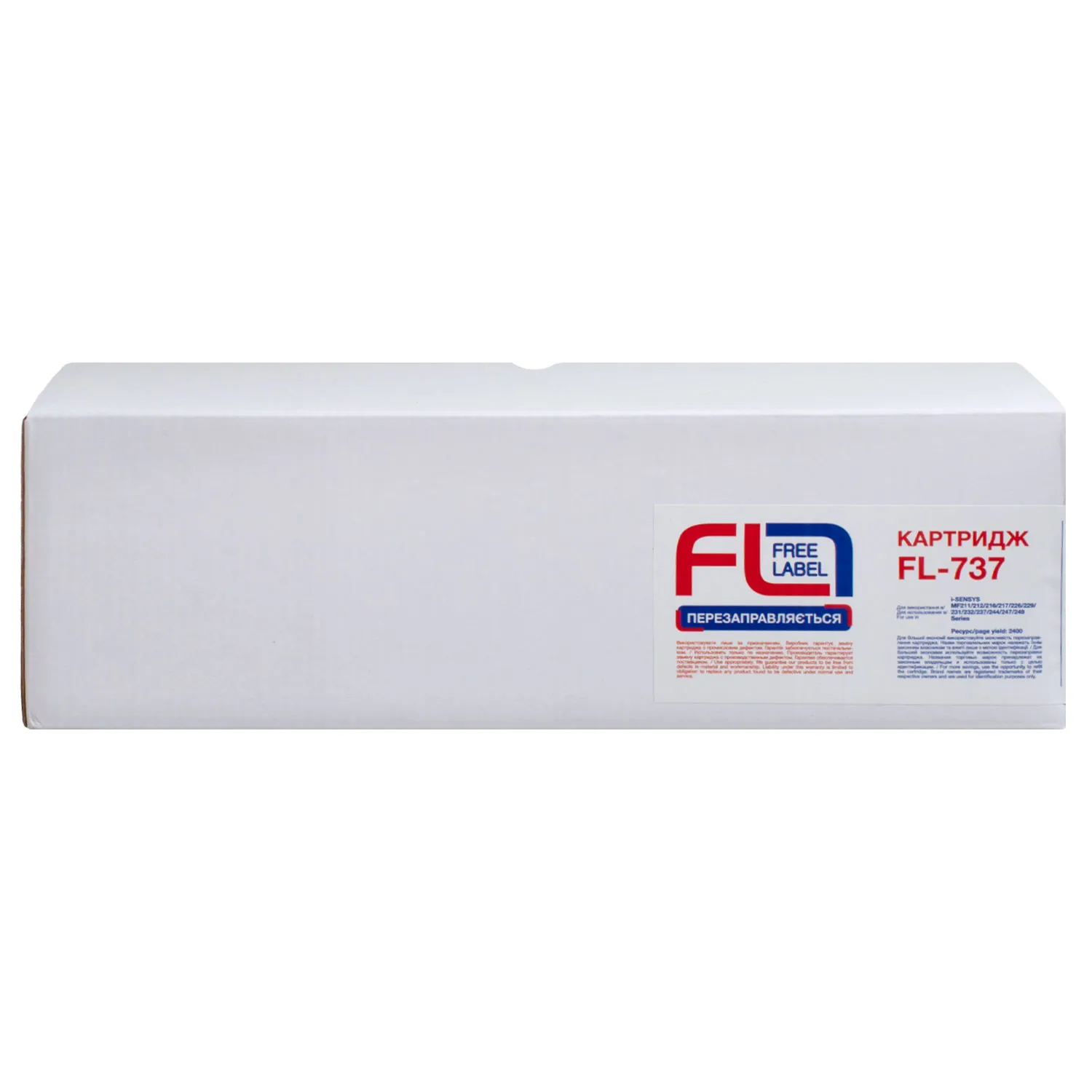 Ресурс совместимого картриджа 737 Free Label составляет 2400 страниц, что соответствует ресурсу аналогичного оригинального картриджа.