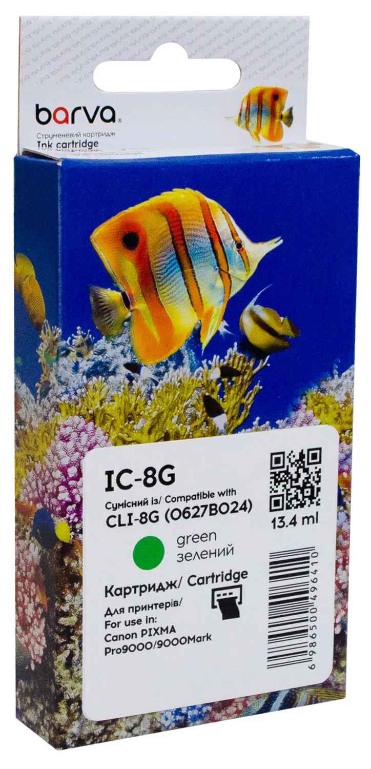 Картридж совместимый Canon CLI-8G (0627B024) 2075 стр, зеленый Barva (IC-8G), описание: