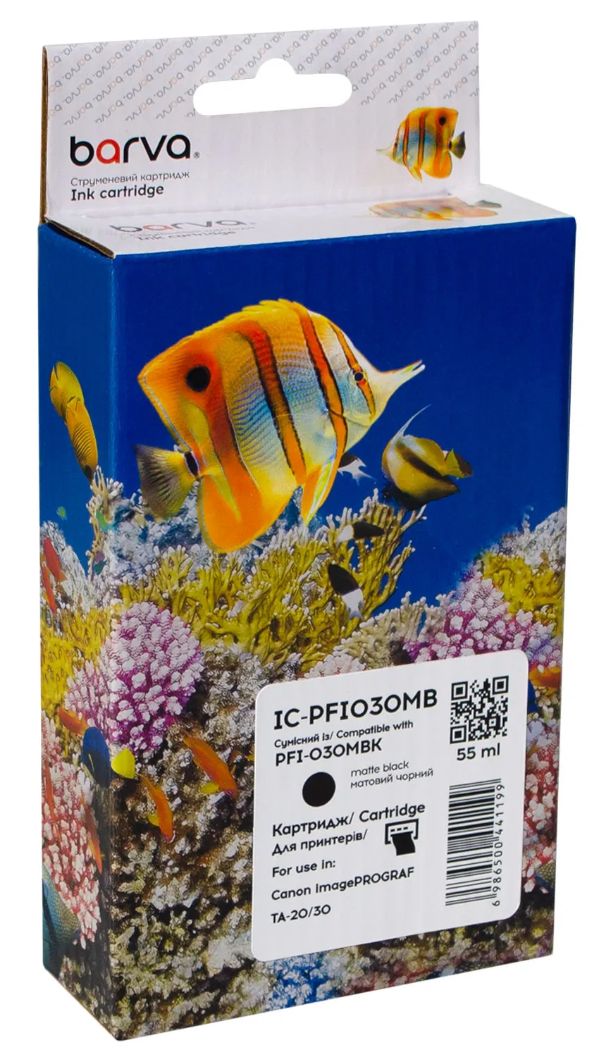 В общем, струйный картридж BARVA – это выгодная альтернатива оригинальным расходным материалам, сочетающая в себе удобство использования, высокое качество печати и надежность. Важно! Перед тем, как заказать Картридж совместимый Canon PFI-030MBK (3488C001) 55 мл, матовый черный Barva (IC-PFI030MB), внимательно проверьте его совместимость с устройством печати.