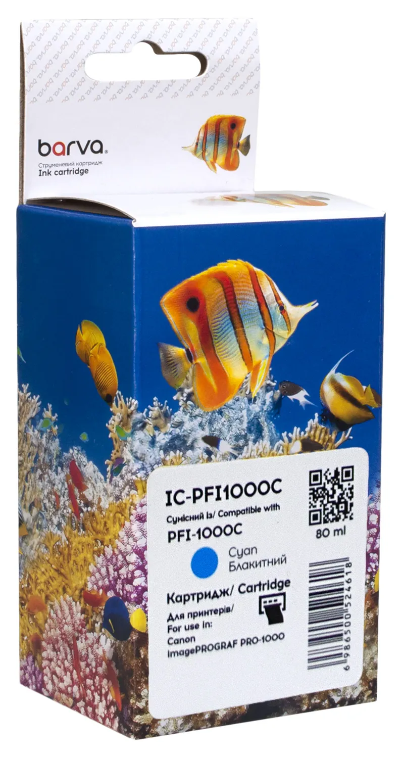 Картридж совместимый Canon PFI-1000C (0547C001) 80 мл, голубой Barva (IC-PFI1000C), описание: