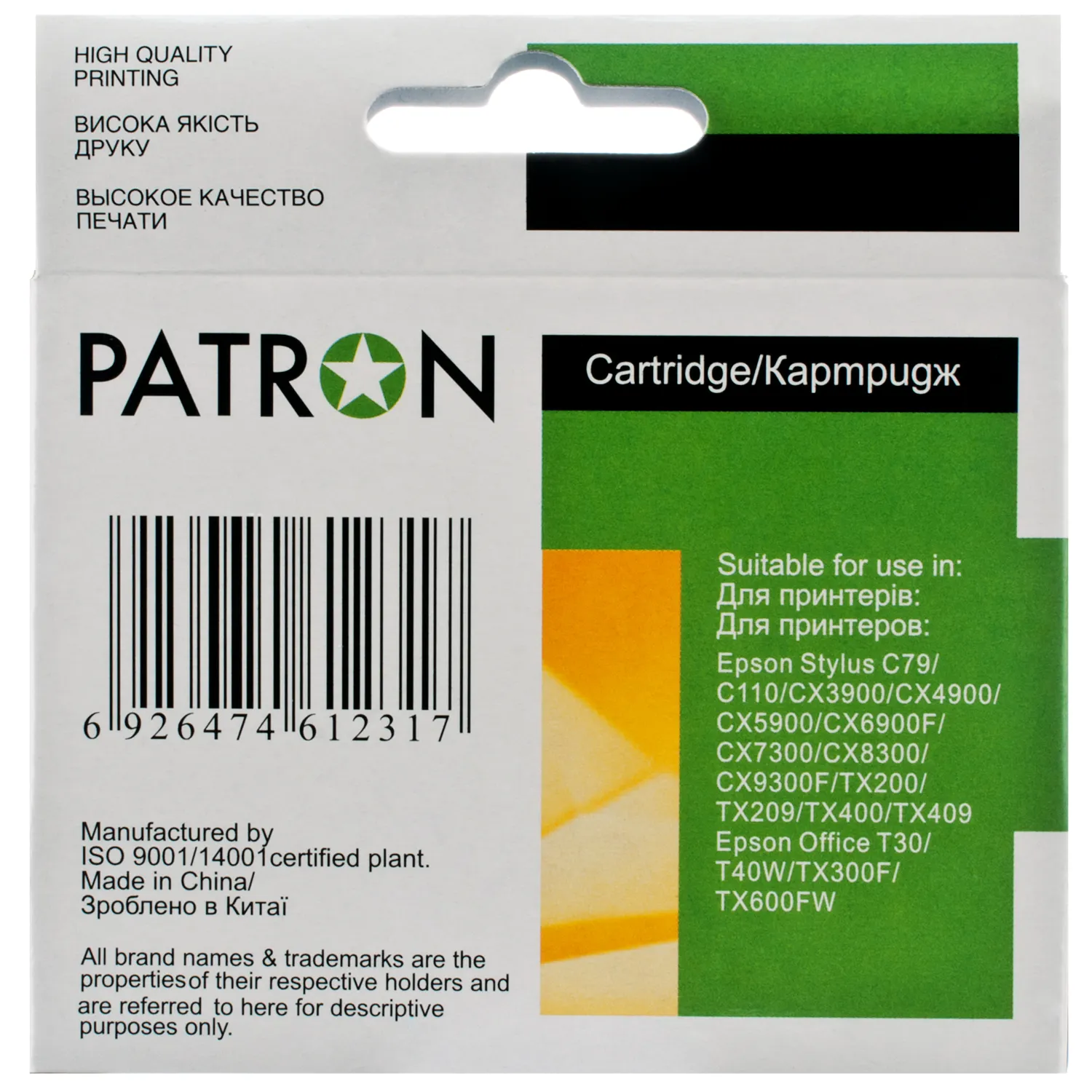 Струйные картриджи (cartridge) Patron уже завоевали популярность среди пользователей и являются прекрасной альтернативой оригинальным расходным материалам. Вся продукция проходит проверку в собственной лаборатории ООО «В.М.», благодаря чему Вы можете быть уверены в качестве продукции.
