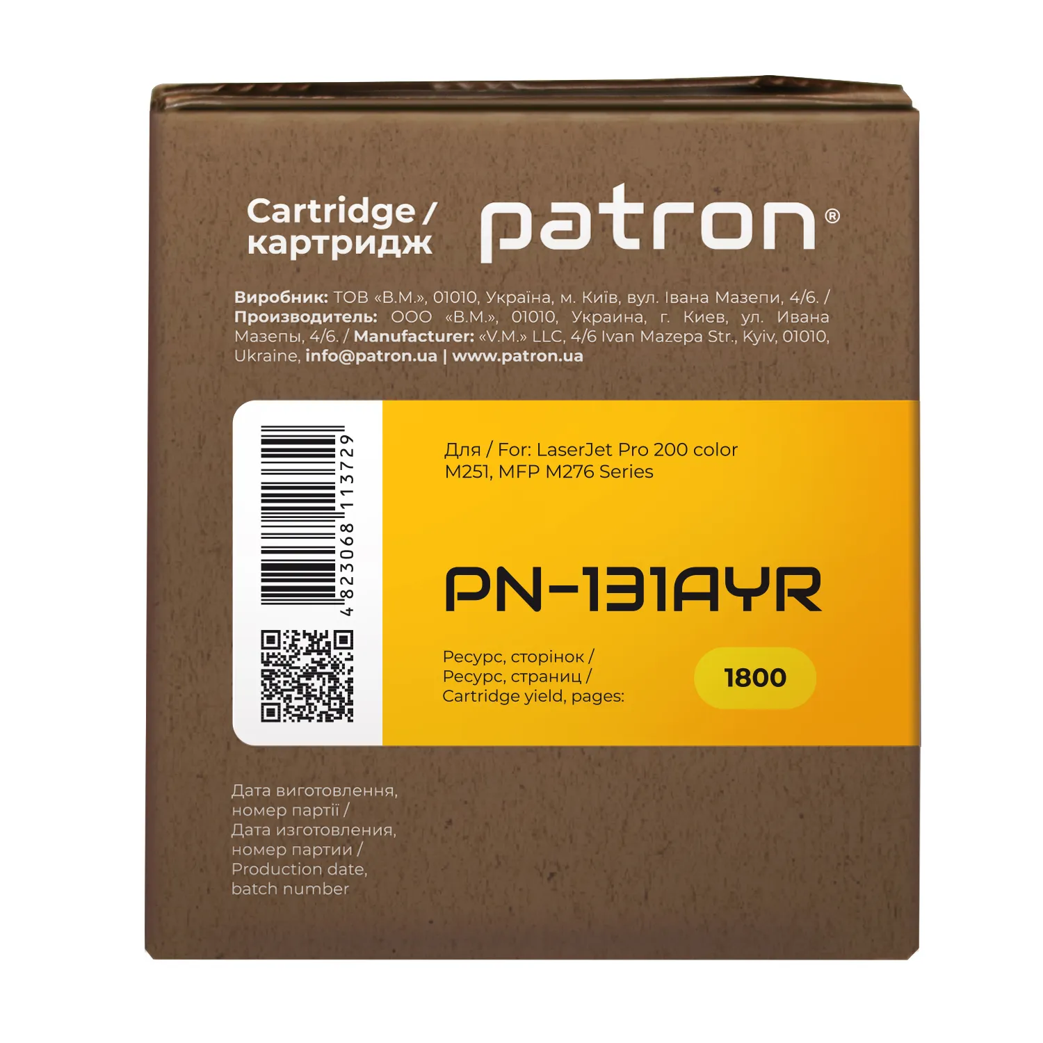 Украинская компания ТОВ «В. М.» производит картриджи Patron Extra с 2004 года. Это реальный продукт, произведенный в нашей стране.