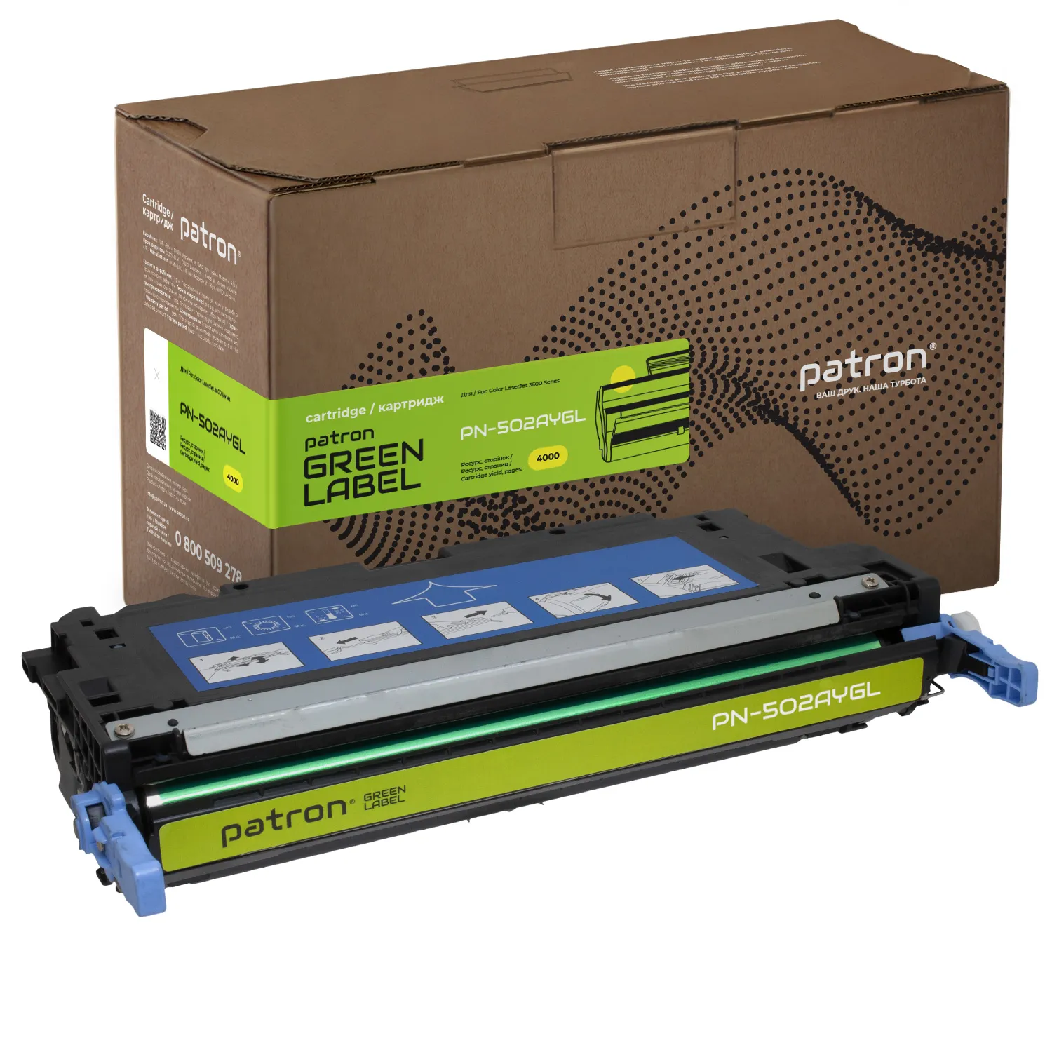 Картридж совместимый HP 502A (Q6472A) Green Label, желтый Patron (PN-502AYGL) оптимальное решение для лазерных принтеров и МФУ.