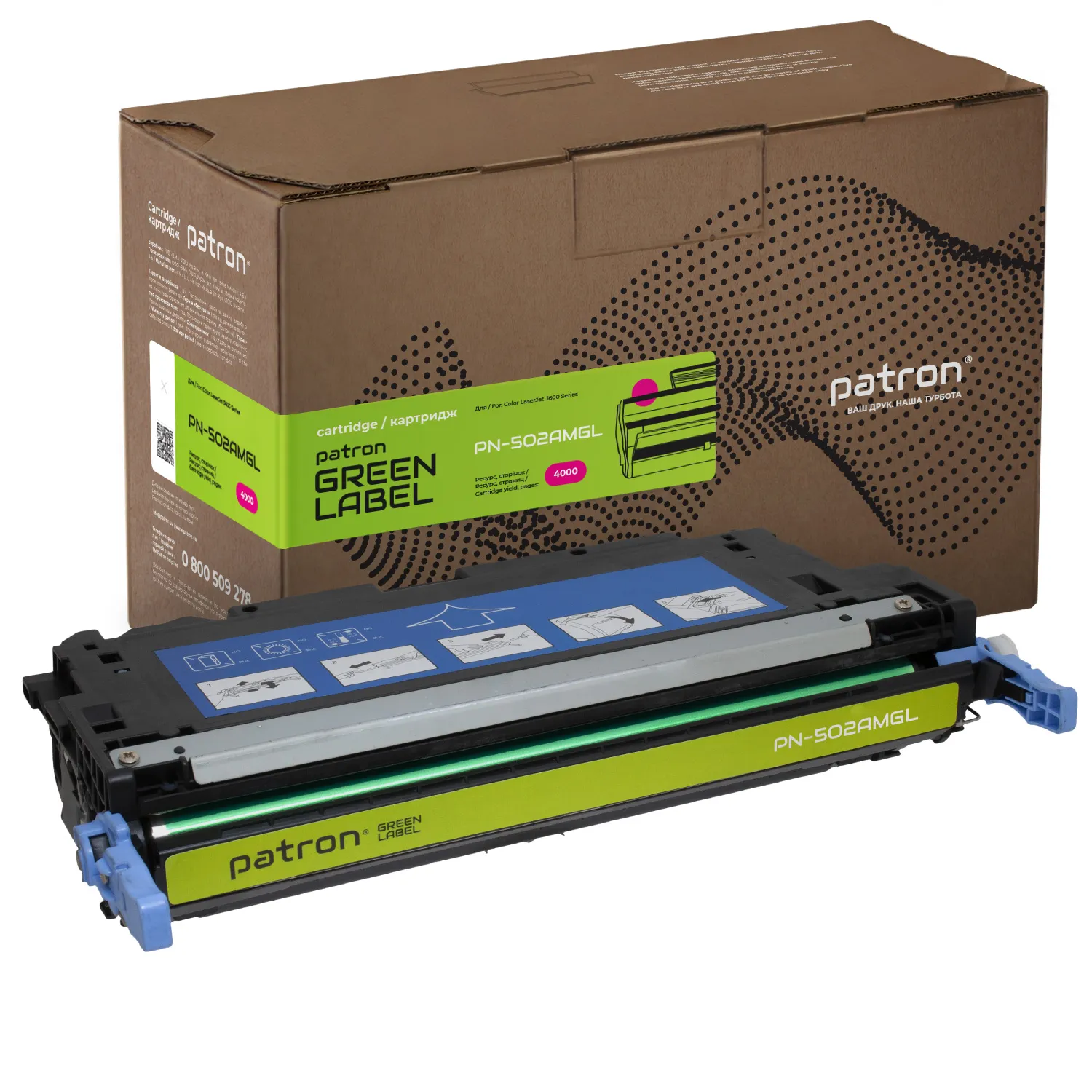Картридж совместимый HP 502A (Q6473A) Green Label, пурпурный Patron (PN-502AMGL) оптимальное решение для лазерных принтеров и МФУ.
