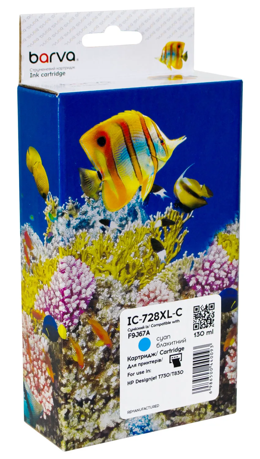 - Картридж совместимый HP 728XL (F9J67A) версия U1-U30, 130 мл, голубой Barva (IC-728XL-C)