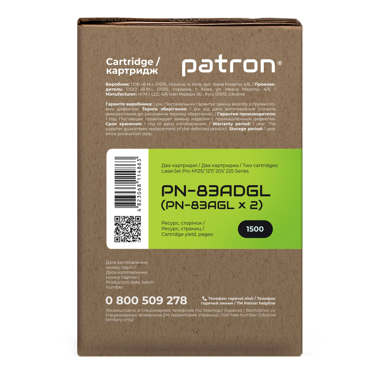 Картридж совместимый HP 83A (CF283A) двойная упаковка Green Label Patron (PN-83ADGL) - лучший выбор на сайте patronservice.ua