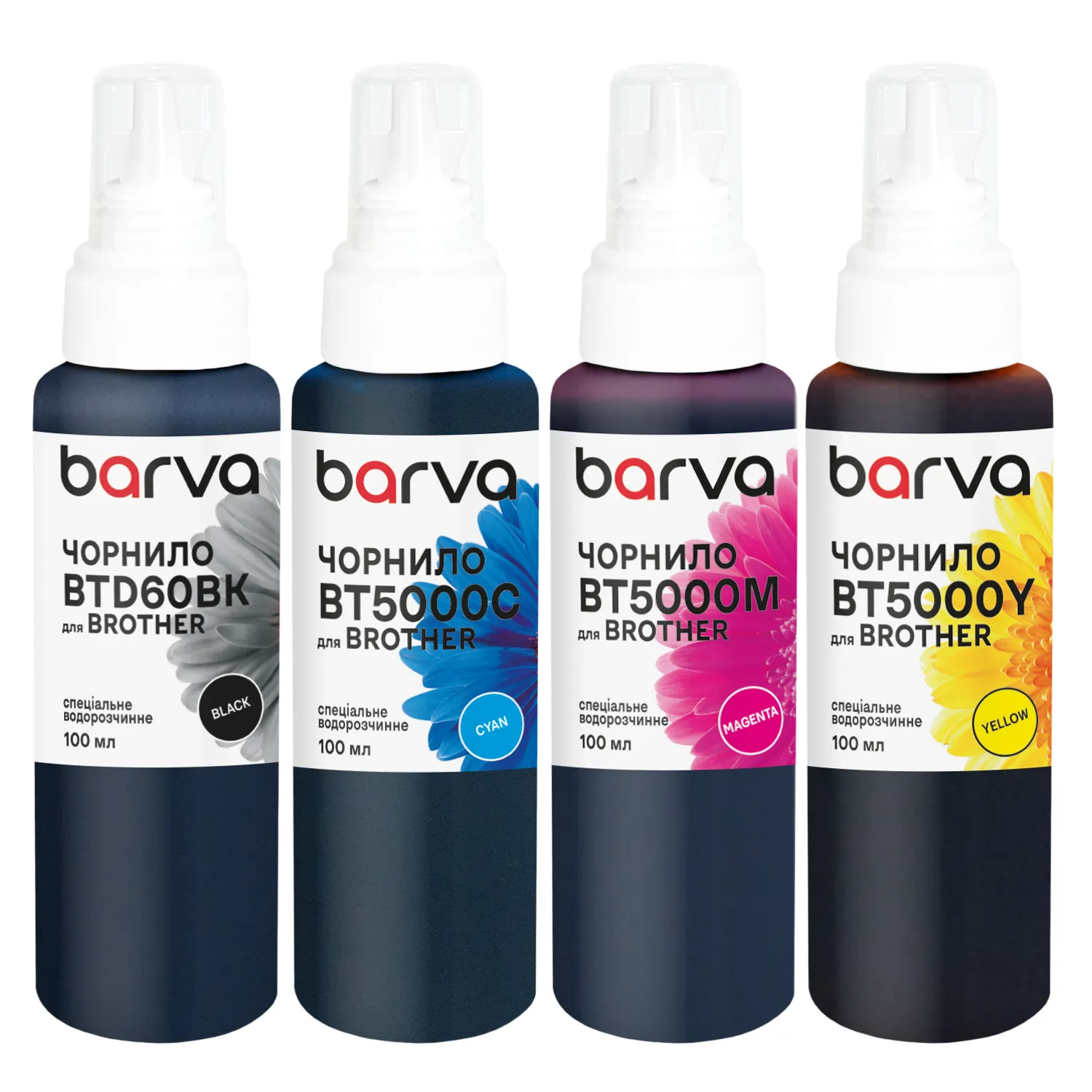 Комплект чернил совместимых для Brother BTD60BK/BT5000C/M/Y специальные 4x100 мл, водорастворимые, BK/C/M/Y Barva (BBTD60-100-MP) описание: