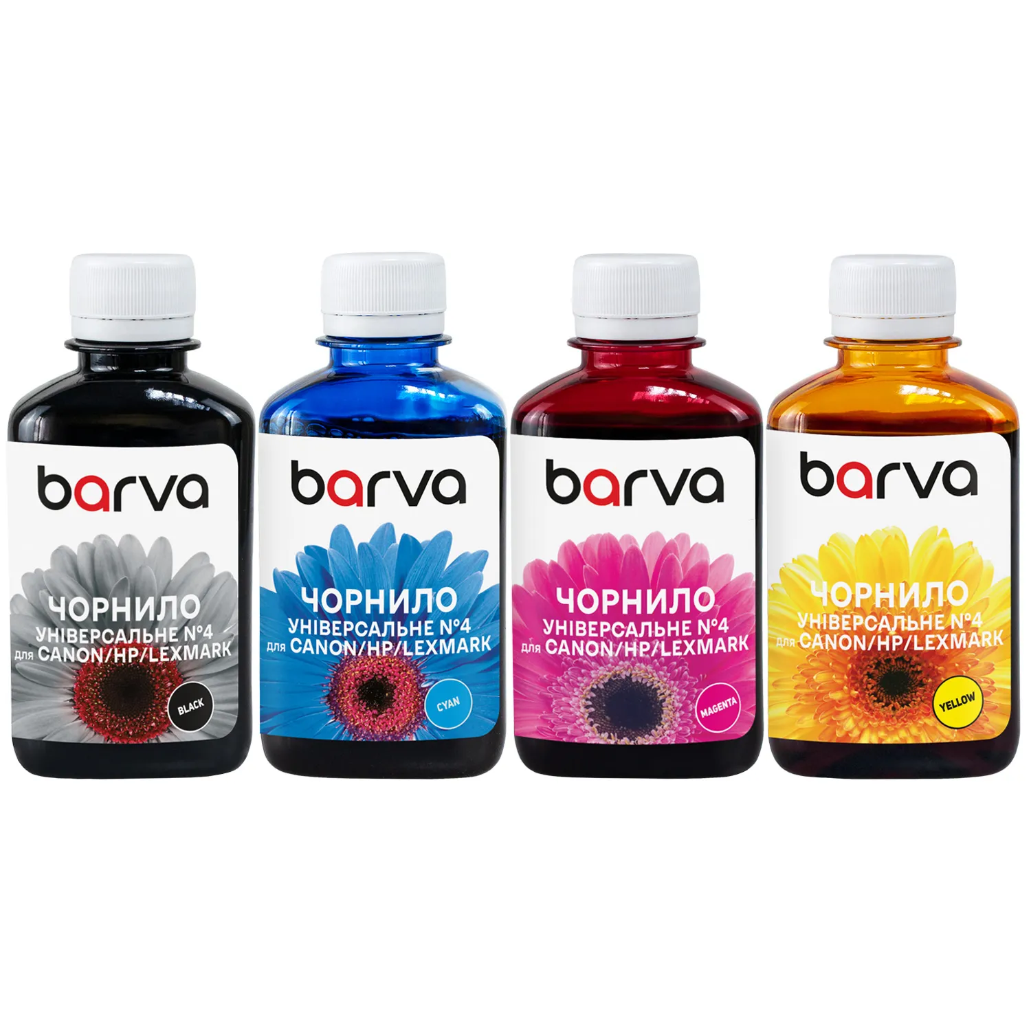 Вы можете купить Комплект чернил для Canon/HP/Lexmark универсальные №4 4x180 г, водорастворимые, BK/C/M/Y Barva (CU4-180-MP) в нашем интернет-магазине с доставкой по Киеву и всей Украине.