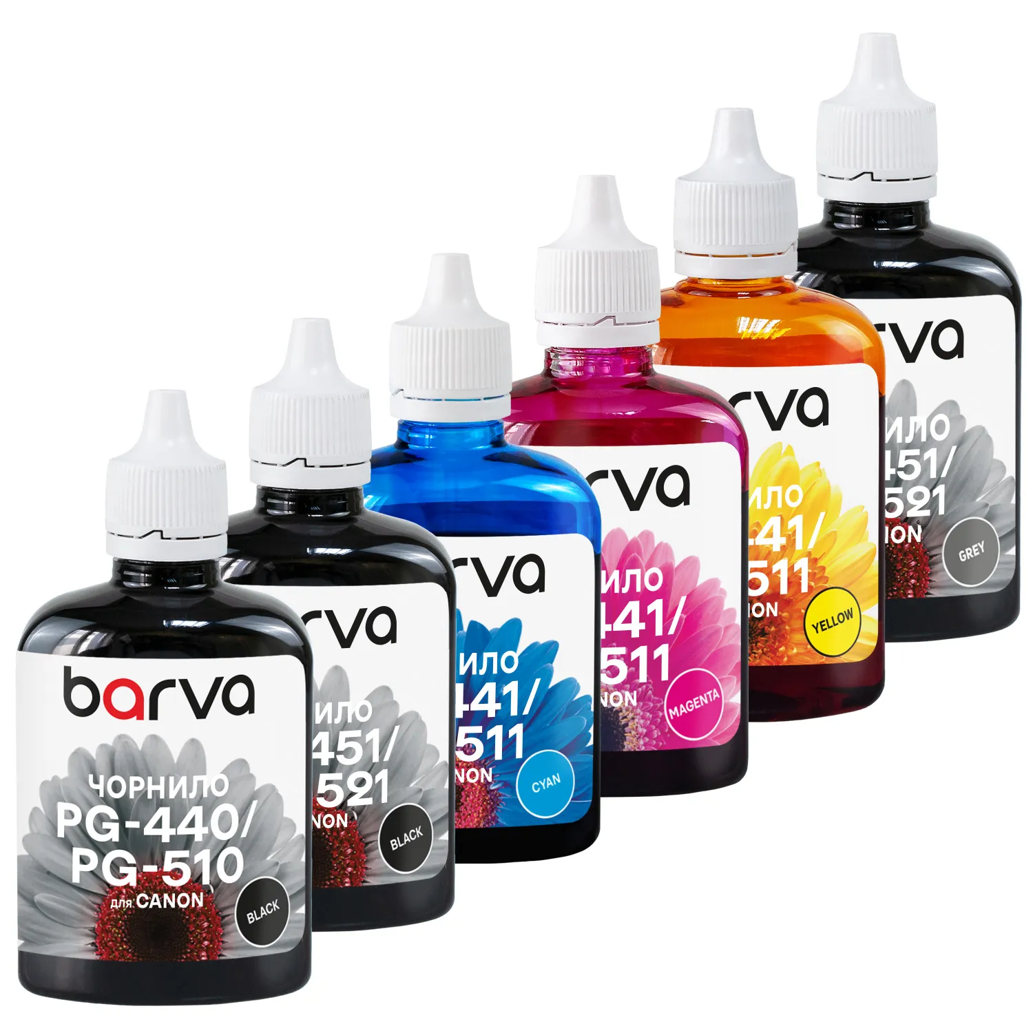 При выборе чернила для принтеров Вам также следует обратить внимание на цвет картриджа, который планируете заправлять. Данные чернила Barva имеют цвет – grey (серый), black (черный), cyan (голубой), magenta (пурпурный), yellow (желтый).