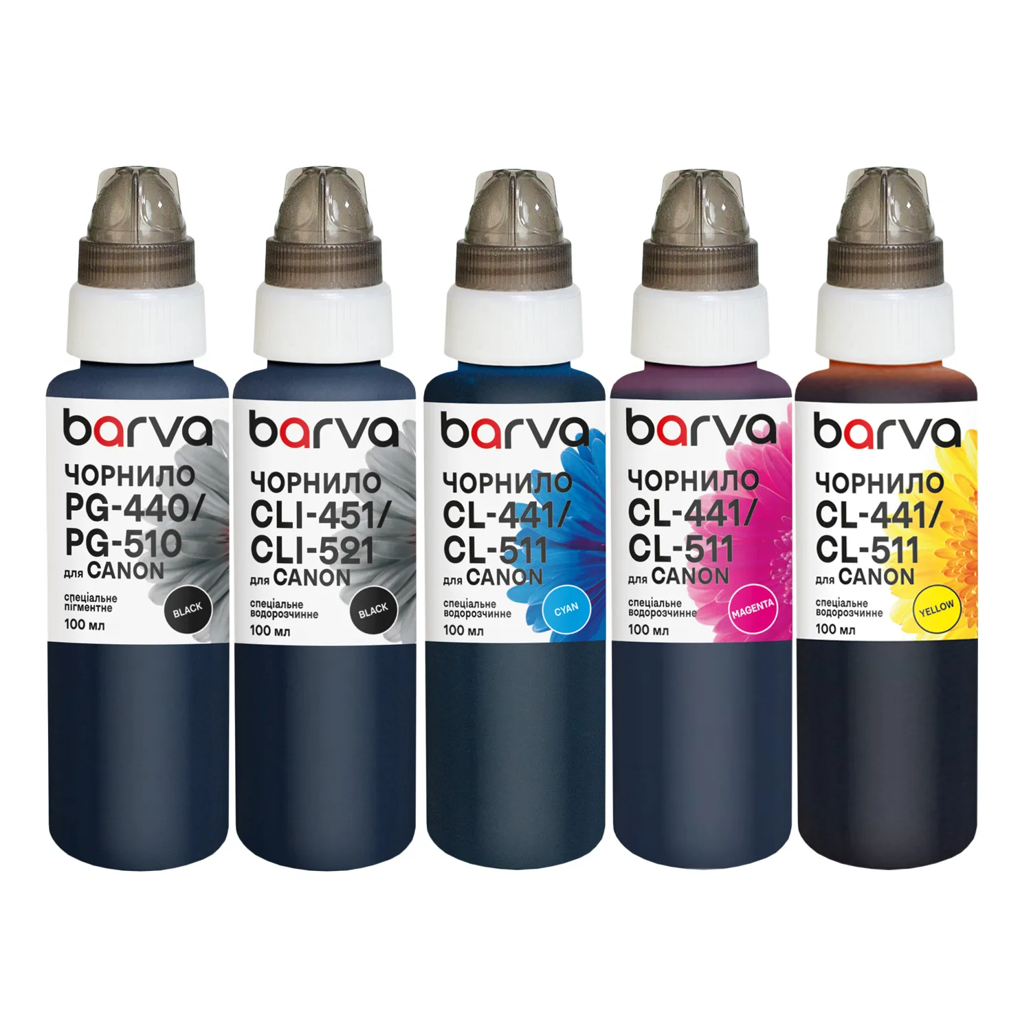 Комплект чернил для Canon PGI-425PGBK + CLI-426BK/C/M/Y специальные 5x100 мл, пигментные/водорастворимые, PGBK/BK/C/M/Y Barva (CPGI425-100-MP)