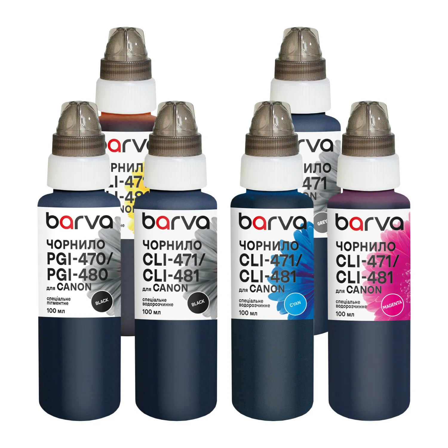 Комплект чернил для Canon PGI-470PGBK + CLI-471BK/C/M/Y/GY специальные 6x100 мл, пигментные/водорастворимые, PGBK/BK/C/M/Y/GY Barva (CPGI470-100-2MP)