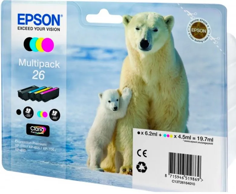 Комплект картриджей 26 черный, голубой, пурпурный, желтый Epson (C13T26164010) - гарантия качества