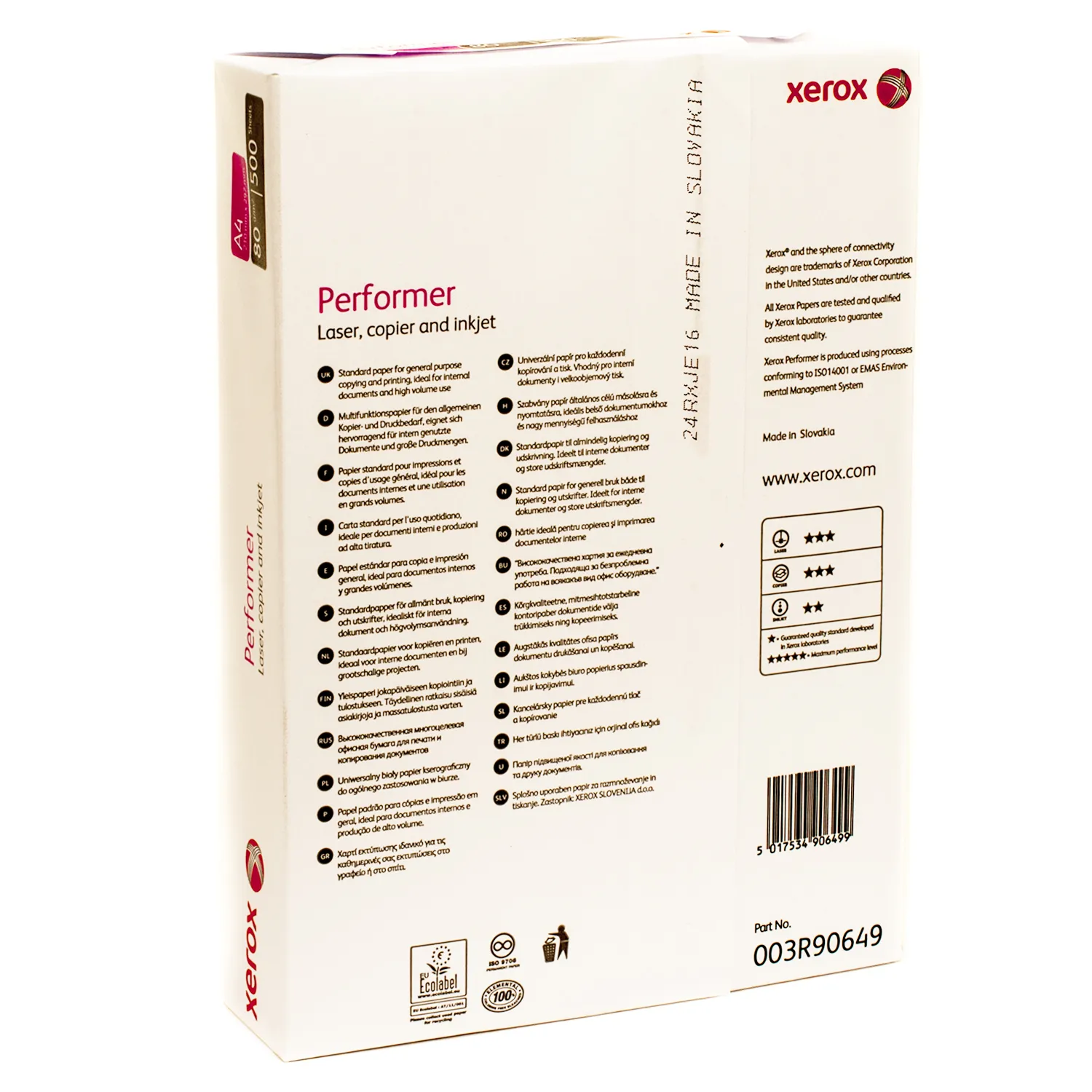 Вы можете купить Бумага офисная А4, 80 г/м2, 500 л, Класс С, Performer Xerox (003R90649) в нашем интернет-магазине с доставкой по Киеву и всей Украине.