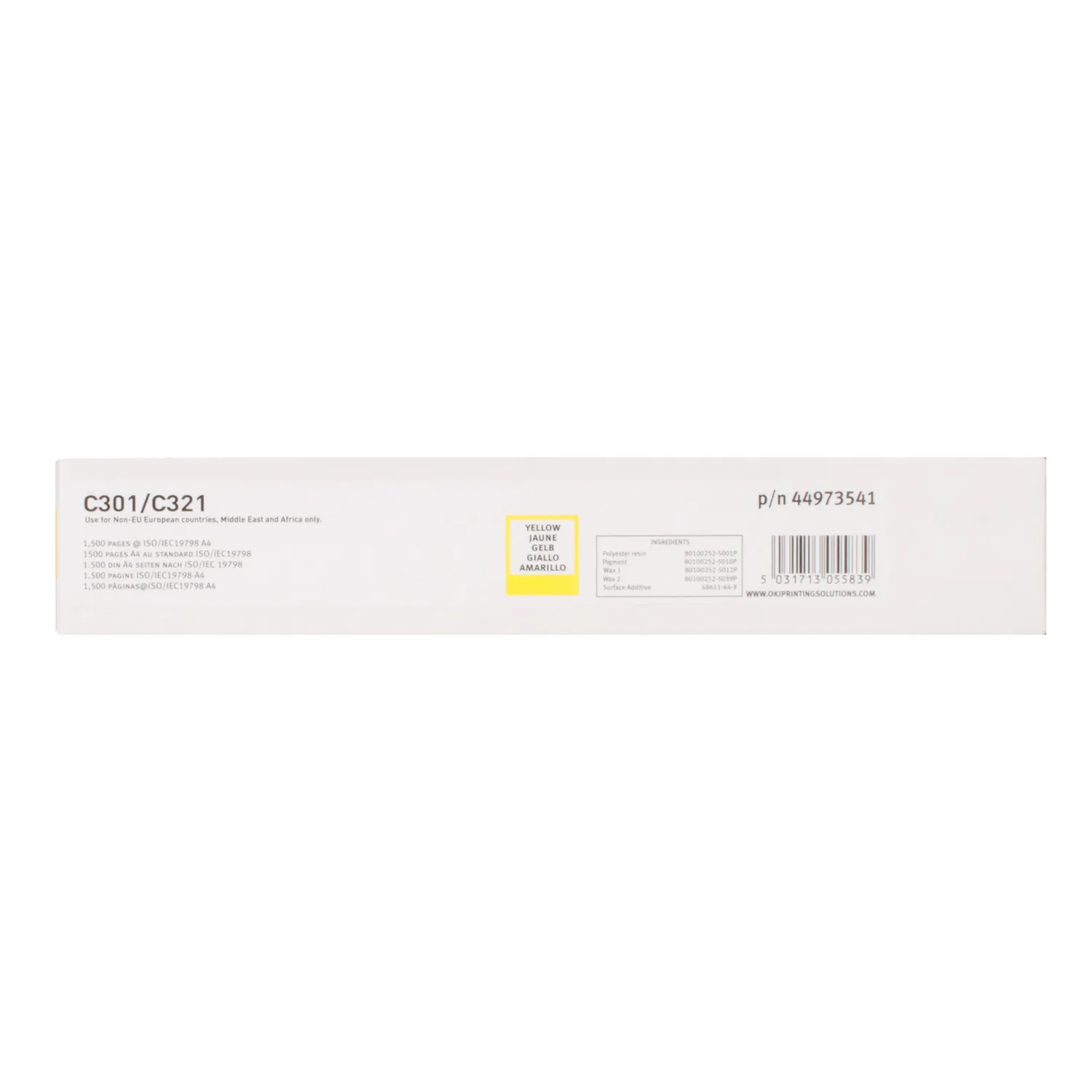 Ресурс тонер - картриджа C301-Y-N Oki составляет 1500 страниц.