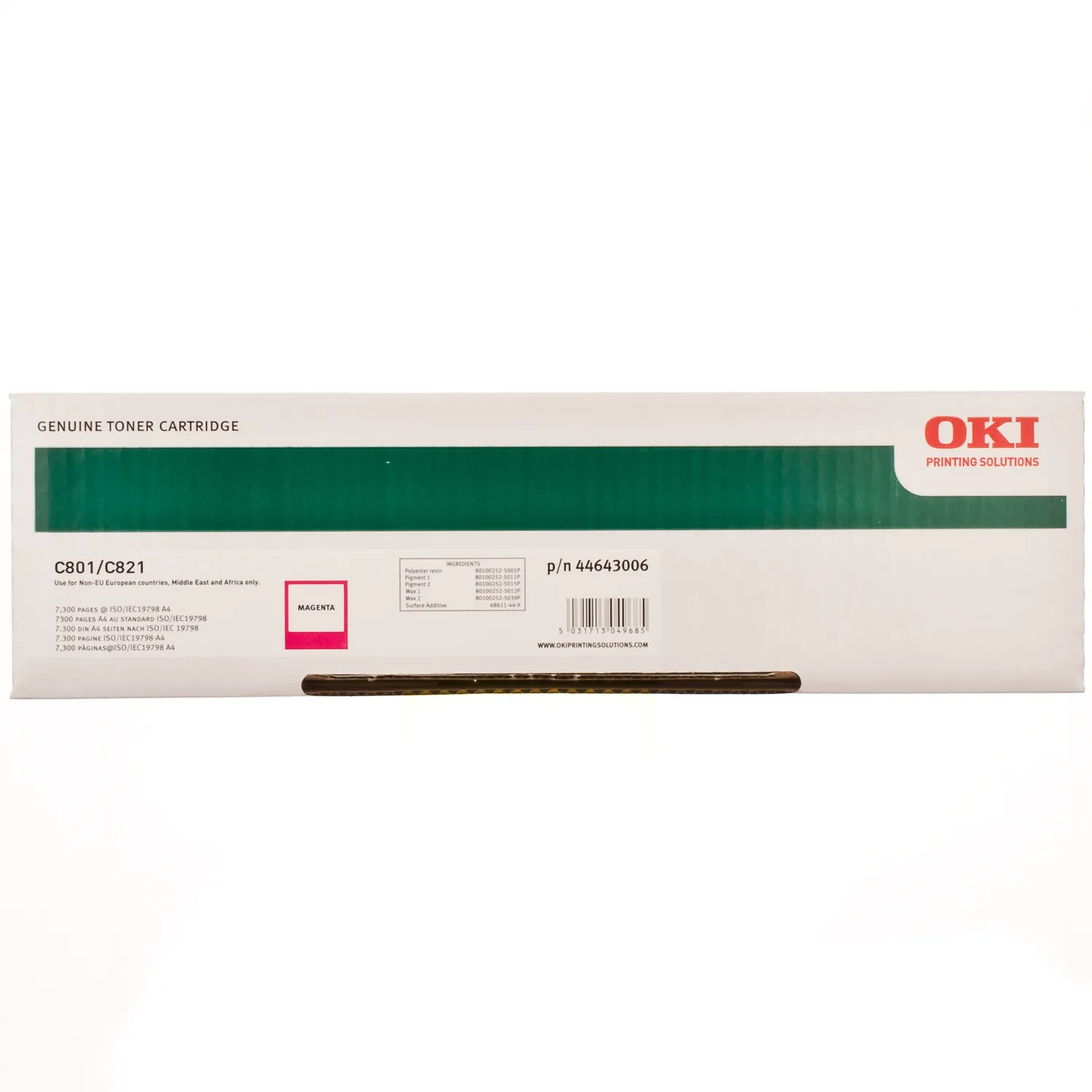 Ресурс тонер - картриджа C801-M-N Oki составляет 7300 страниц.