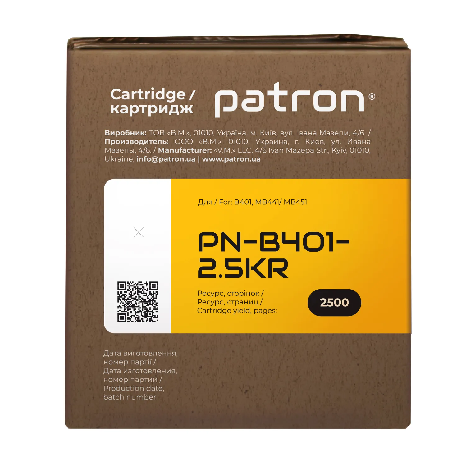 Украинская компания ТОВ «В. М.» производит картриджи Patron Extra с 2004 года. Это реальный продукт, произведенный в нашей стране.