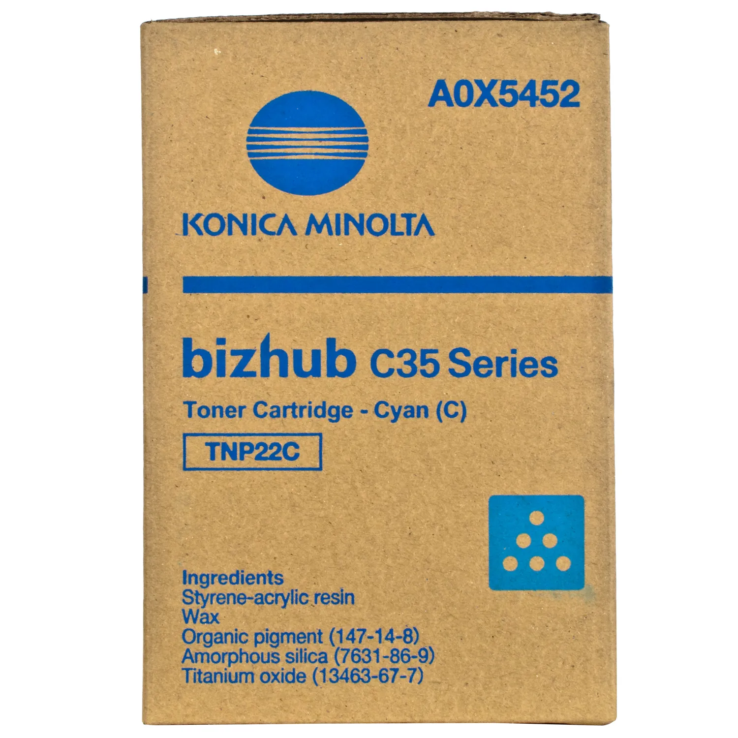 Картридж A0X5452 разработан и изготовлен компанией Konica Minolta, потому является идеальным выбором для безупречного качества отпечатков. Можно с уверенностью рассчитывать, что оригинальный картридж для лазерного принтера Konica Minolta будет безотказно работать на протяжении всего ресурса – 6000 страниц. Тонер-картридж TNP-22C голубой Konica Minolta (A0X5452) относится к группе оригинальных расходных материалов, единственным минусом которых является высокая стоимость.