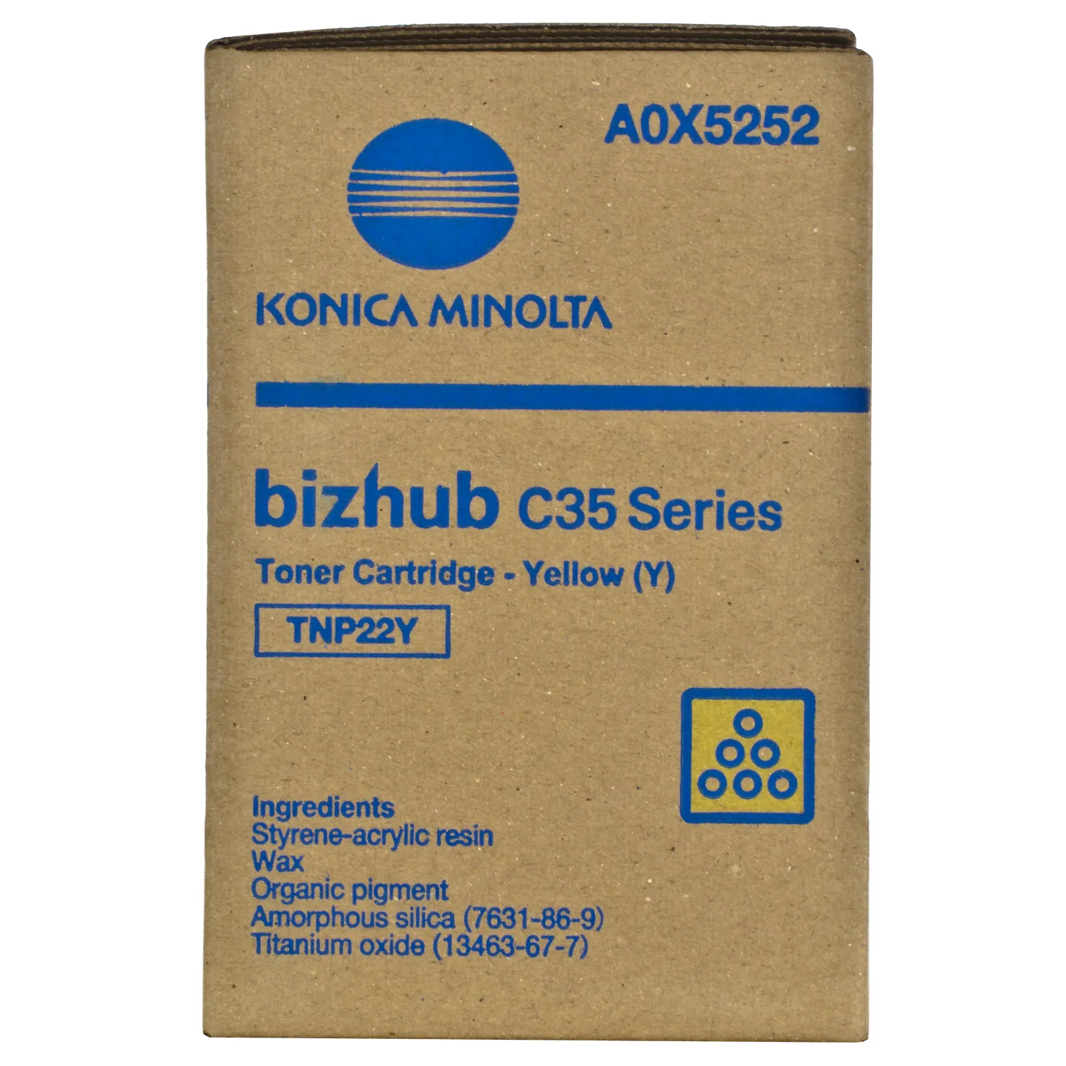 Картридж A0X5252 разработан и изготовлен компанией Konica Minolta, потому является идеальным выбором для безупречного качества отпечатков. Можно с уверенностью рассчитывать, что оригинальный картридж для лазерного принтера Konica Minolta будет безотказно работать на протяжении всего ресурса – 6000 страниц. Тонер-картридж TNP-22Y желтый Konica Minolta (A0X5252) относится к группе оригинальных расходных материалов, единственным минусом которых является высокая стоимость.