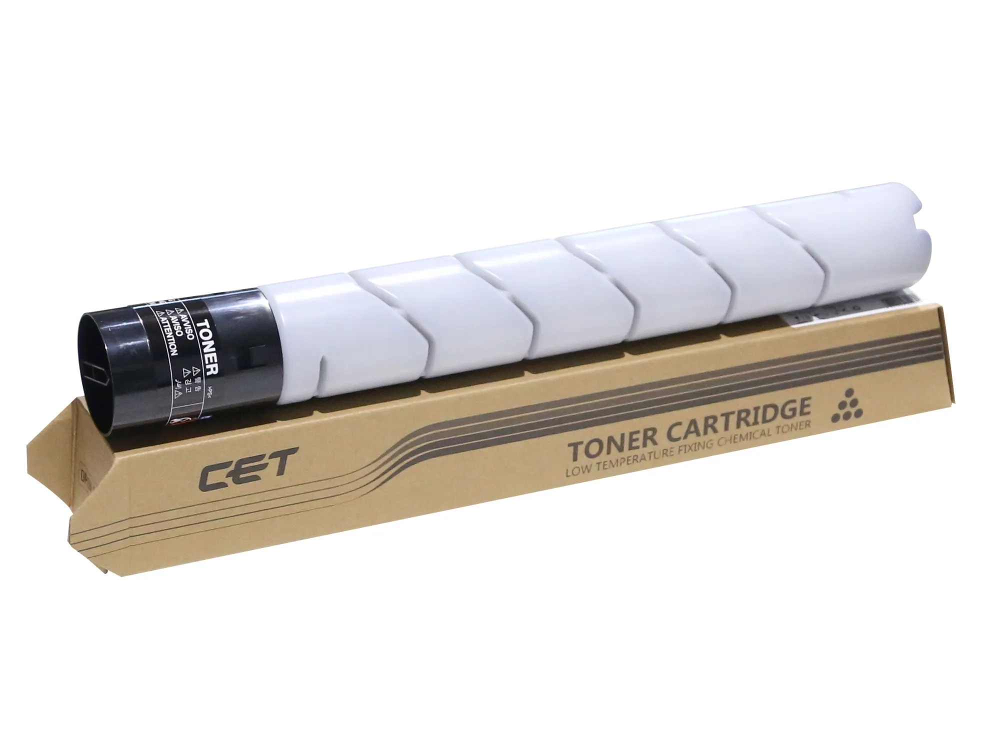 Витратні матеріали CET відносяться до роздільної системи – тонер-картридж (тонер-туба) + драм-картридж - в таких пристроях фотобарабан знаходиться в окремому блоці та замінюється окремо від тонер-картриджа, що є більш економним варіантом.
