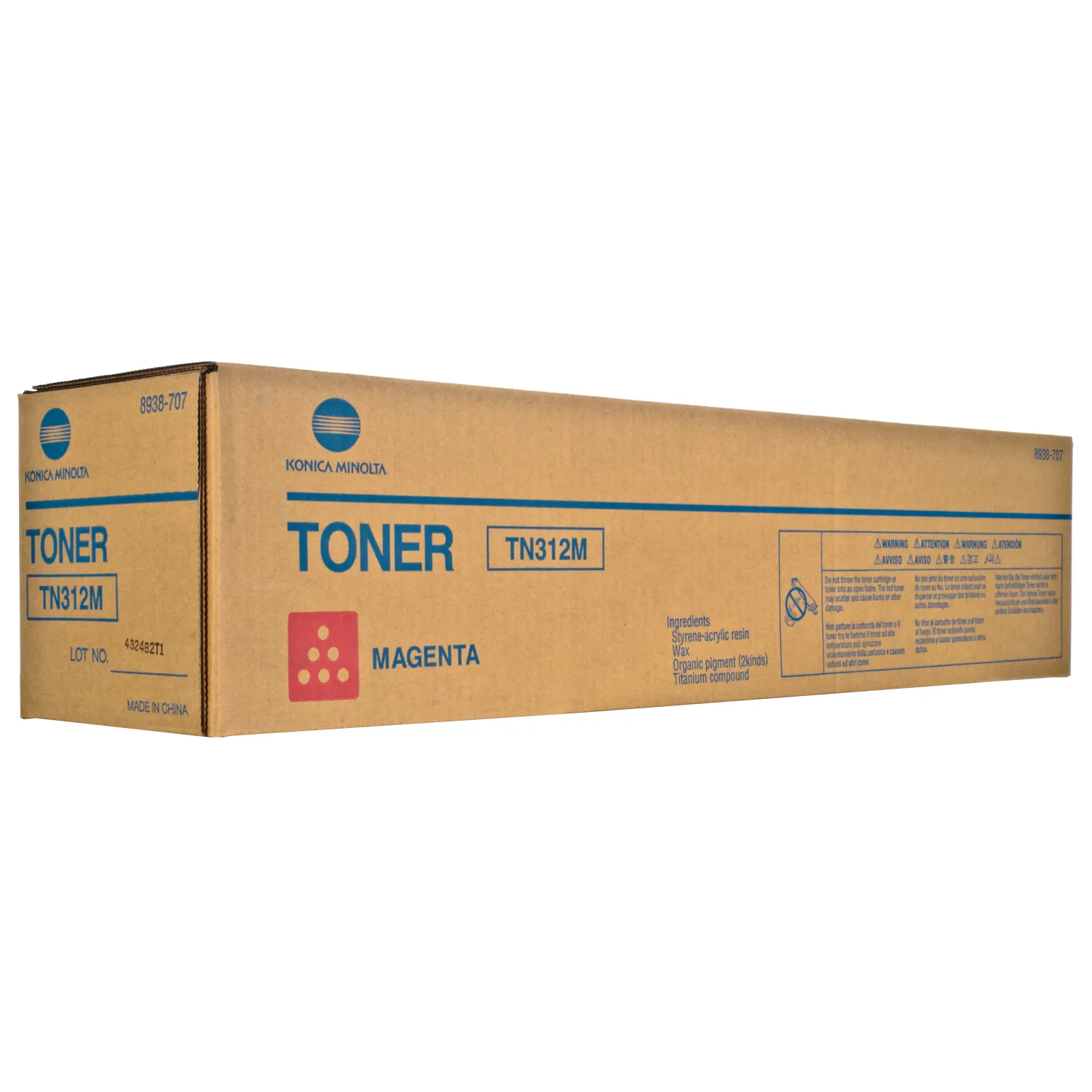 Картридж 8938-707-M розроблений та виробляється компанією Konica Minolta, тому він є ідеальним вибором для бездоганної якості друку. Можна із впевненістю розраховувати, що оригінальний картридж для лазерного принтера Konica Minolta буде безвідмовно працювати протгом всього ресурсу – 12000 сторінок. Тонер-картридж TN-312M пурпуровий Konica Minolta (8938-707) відноситься до групи оригінальних витратних матеріалів, єдиним мінусом яких є висока вартість.